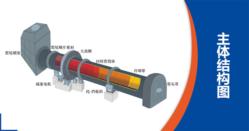 物料從窯尾(筒體的高端)進(jìn)入回轉(zhuǎn)窯內(nèi)煅燒。由于筒體的傾斜和緩慢的回轉(zhuǎn)作用,物料既沿圓周方向翻滾又沿軸向(從高端向低端)移動(dòng),繼續(xù)完成其工藝過(guò)程,后,生成熟料經(jīng)窯頭罩進(jìn)入冷卻機(jī)冷卻。燃料由窯頭噴入窯內(nèi),燃燒產(chǎn)生的廢氣與物料進(jìn)行交換后,由窯尾導(dǎo)出。?